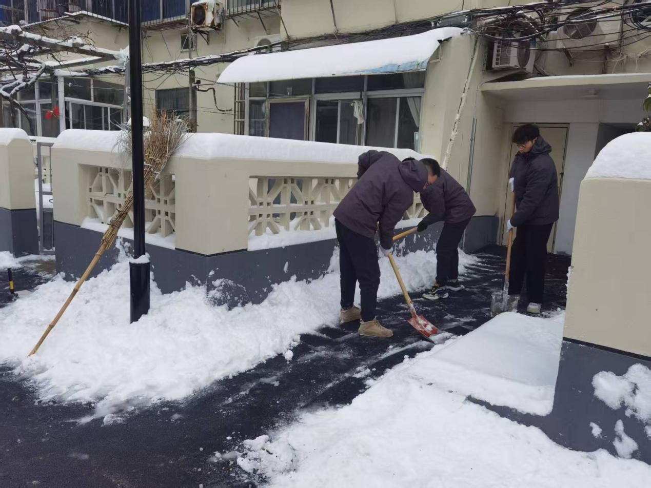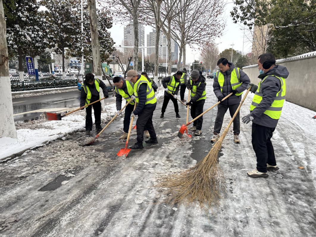 降雪当晚,公司领导率先垂范,连夜赶赴上级公司参与统一组织的除雪行动,带头冲锋在清雪一线;同步组织工作人员对公司门口及周边重点路段有序抛撒融雪盐,防范路面结冰打滑,守护夜间行人与车辆出行安全。1月20日上午,公司第一时间组织干部职工分两批次前往四海天桥、工行小区,大家手持铁锨、扫帚、推雪板,分工协作铲积雪、清死角、通路面,高效完成两处区域清雪任务,保障道路顺畅通行;1月20日下午,公司积极响应市级部署,集结20名骨干力量奔赴淮舜路铁路立交桥北头至陈洞路立交桥路段,集中清除北侧非机动车道积雪积冰,助力城市道路恢复通行秩序。
